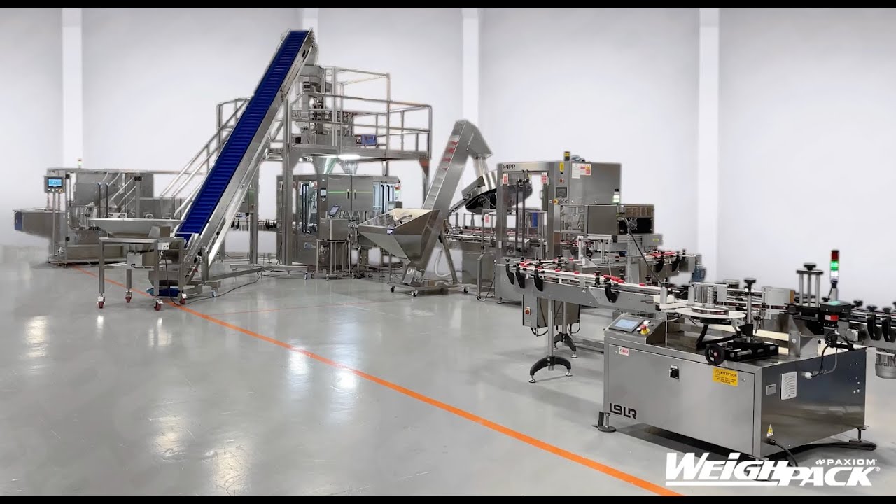 This continuous motion container filling systems can fill a wide variety products including nuts, candy, confections, cheese, spices, coffee, gummies, vegetables, fruits, medicinals, pharmaceuticals, pet food and much more.